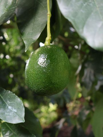 A semi-drwarf tree growing 5-6mtrs, but respond well to pruning. A great companion for Hass tree. Fruit is large & round with a very dark, almost black skin. Slightly nutty and creamy taste.