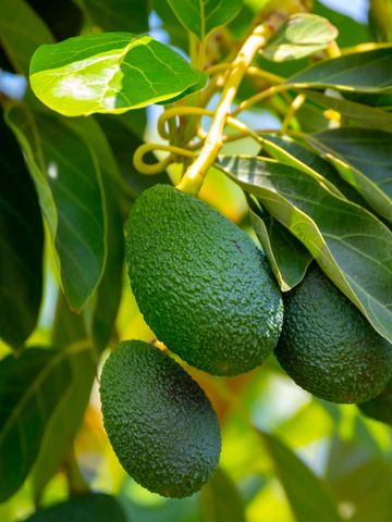 Reaching 6-8 mtrs in height, the Fuerte tree provides ample shade with its large, spreading canopy and glossy, tropical leaves. Known for their rich, creamy, nutty flavoured fruit.